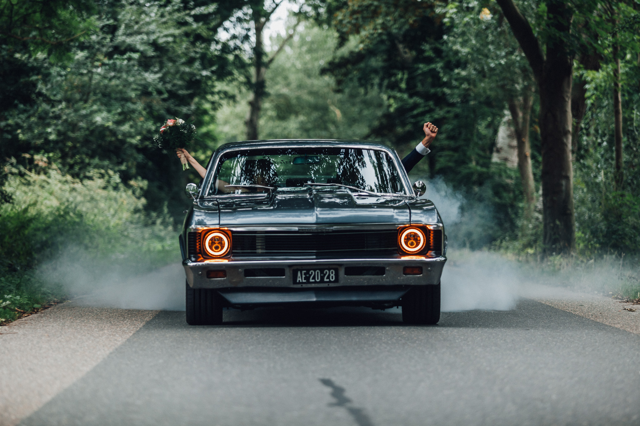 Om 11.15 uur kwam Jeroen mij ophalen met zijn Oldtimer. Wat een stress had die auto ons nog even gegeven, 2 weken voor de bruiloft liep de motor in elkaar, wonder boven wonder was die toch net op tijd weer gemaakt. Mijn make up en haar was inmiddels klaar, dus snel naar boven om mijn jurk aan te trekken! Gelukkig hadden mijn moeder en ik dit pas nog geoefend en waren we zo klaar. Daarna kwam onze “first look” wat ik echt het aller spannendste vond van de hele dag, de eerste tranen vloeiden al!